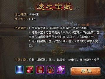 据悉,今年的宝藏之夜将有一件神秘宝藏现身。这件宝藏被誉为“千年宝藏”,其价值无法估量。为了寻找这件宝藏,参与者需要解开一系列谜题,挑战重重。